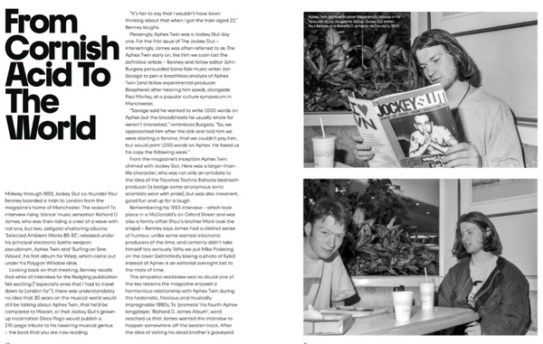 The people behind Disco Pogo have had a long-standing relationship with Richard D. James for over 30 years via their 90s magazine Jockey Slut. The book is edited by Disco Pogo editor Jim Butler and features interviews, essays and features from the best music journalists working today. The book features an iconic cover portrait of Aphex by seminal photographer Wolfgang Tillmans, plus a huge amount of great photography. The designer of Aphex's logo Paul Nicholson also shares his archives, alongside material from Aphex himself - Warp, R&S, Rephlex and the people behind Aphex fan website Lanner Chronicle. The book is hardback, 272 pages and is beautifully designed and printed of course!