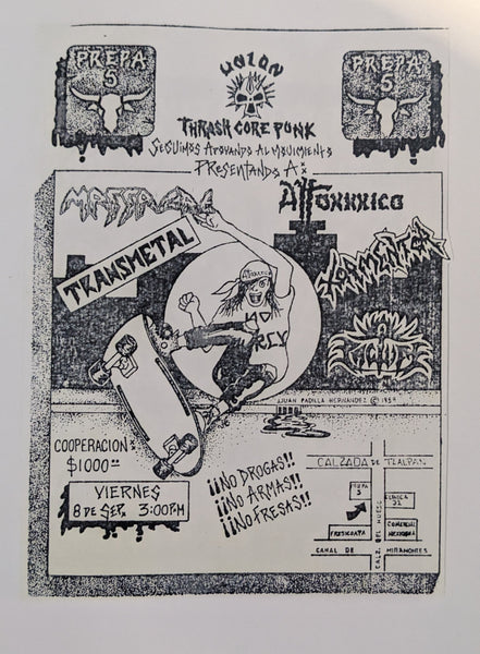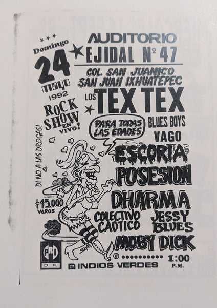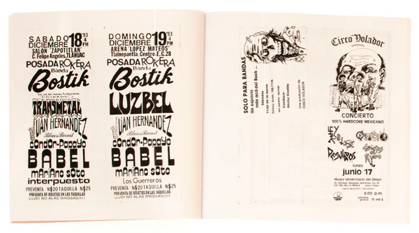 Punk Rock Mexican Flyers 1990 – 2000 is a collection of “La Banda Rock” concert & music event flyers collected in Mexico City by Hector Mosko.